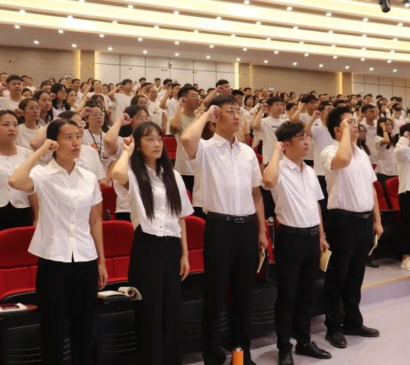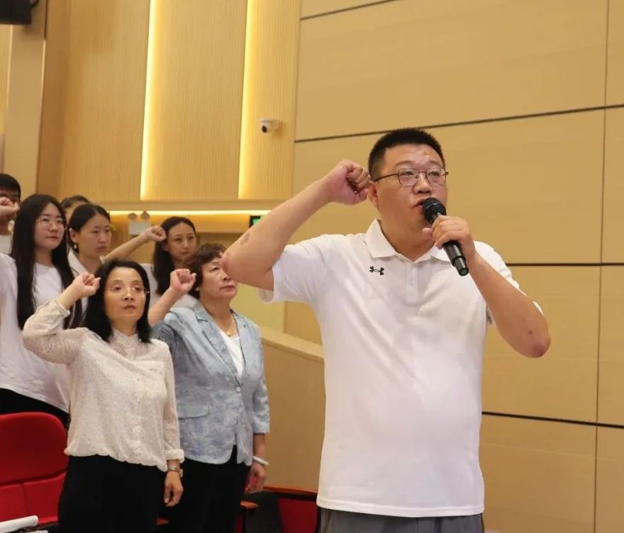 會(huì)議在雄壯的國歌聲中拉開帷幕。藝術(shù)部張力主任帶領(lǐng)全體教師高舉右拳莊嚴(yán)宣誓《衡水街關(guān)中學(xué)教師誓詞》和《衡水街關(guān)中學(xué)“八個(gè)不”》:我是光榮的街中教師,我要恪守追求*的校訓(xùn),志存高遠(yuǎn)……;1、不能讓工作在我這兒拖延,2、不能讓工作在我這兒失誤,3、不能讓形象在我這兒受損……鏗鏘的誓言擲地有聲,詮釋著全校教職工堅(jiān)守教育初心,勇?lián)耸姑某嘧又摹?/span>