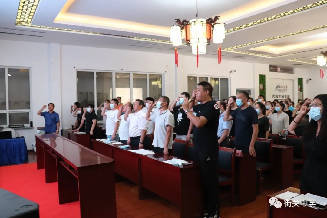 張力主任帶領(lǐng)全體教師集體宣誓 《衡水街關(guān)中學“八個不”》 。