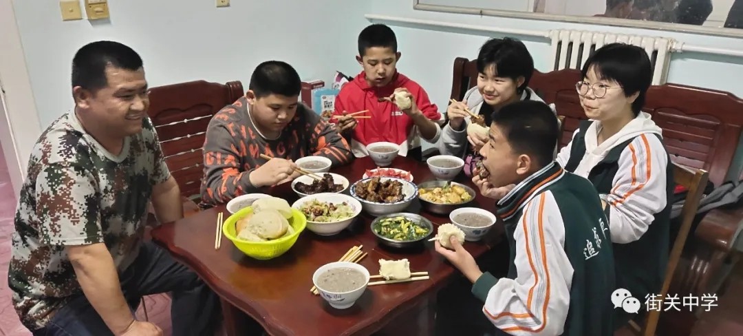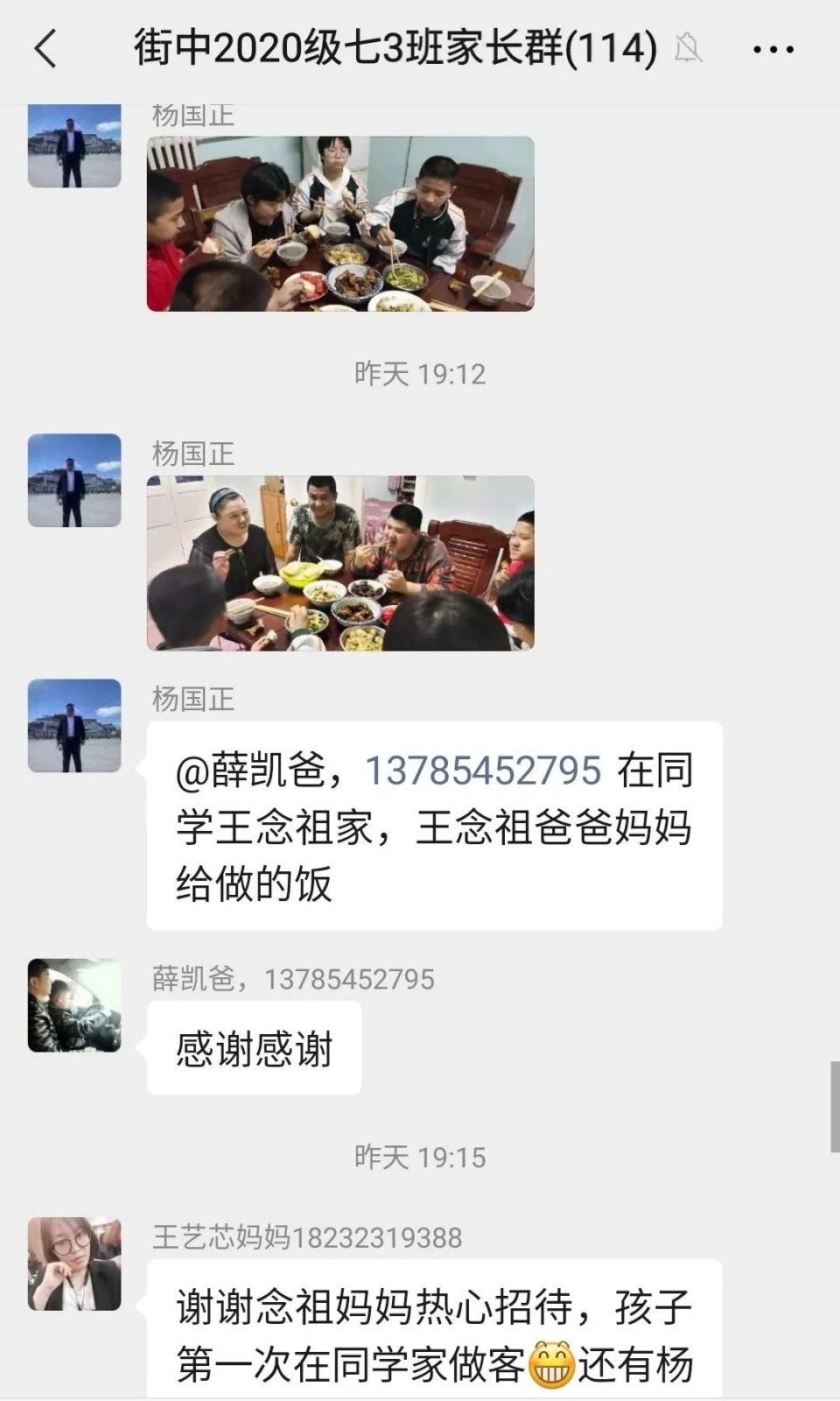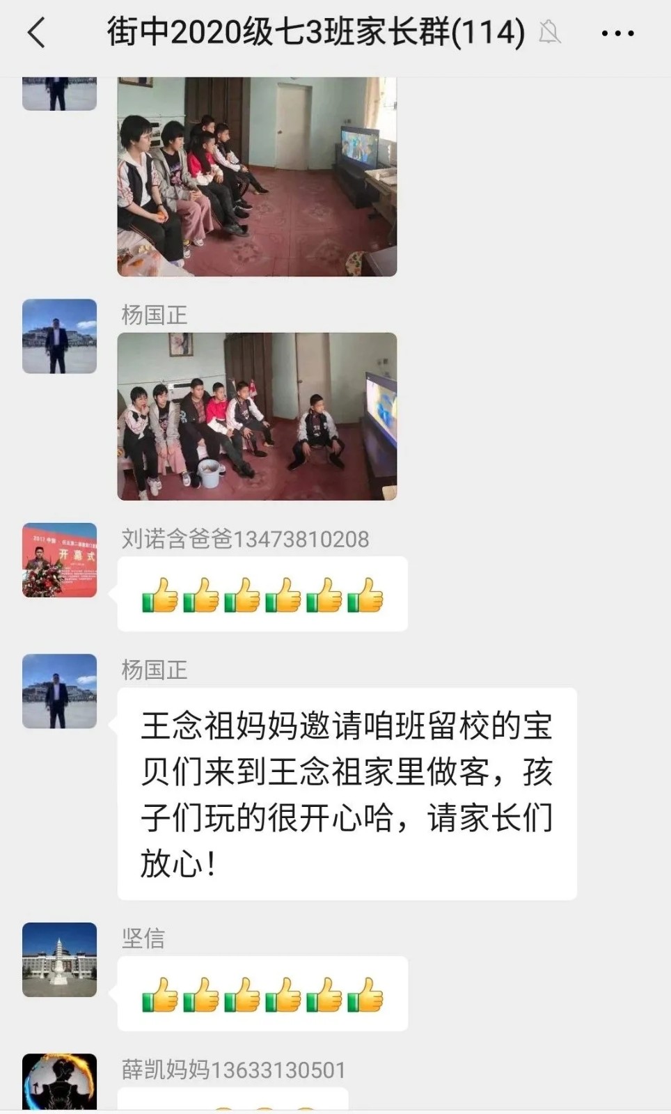 七年級(jí)(3)班的王念祖媽媽為了讓遠(yuǎn)方的家人放心、安心,讓孩子們感受到家的溫暖,與班主任楊國(guó)正老師協(xié)商,邀請(qǐng)本班放假留校學(xué)生到自家做客。孩子們得知后臉上馬上綻放出了燦爛地笑容,在王祖念同學(xué)的帶領(lǐng)下楊老師陪同王藝芯、薛凱等同學(xué)們來(lái)到了王祖念同學(xué)家中。