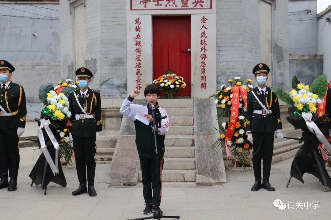 學生活動日暖風熏,翠柏凝春,蒼天流淚,草木動情,時至清明,我校全體師生懷著無比崇敬的心情,來到“英靈烈士亭”,為烈士掃墓,深切緬懷革命先烈的豐功偉績,寄托我們的哀思,告慰先烈的在天之靈。先烈們?yōu)榱蓑尦^虜,為了祖國的強盛,為了新中國的誕生,拋頭顱、灑熱血,用自己的生命譜寫了浩氣長存的不朽贊章,換來了我們今天幸福的生活。今天站在烈士亭前,我們思緒飛揚,浮想聯(lián)翩,仿佛又回到了那炮火連天的歲月,仿佛又看到了先烈前赴后繼、視死如歸的身影;我們?yōu)榱沂可亩虝憾瘒@,更被烈士偉大的生命價值而震撼。