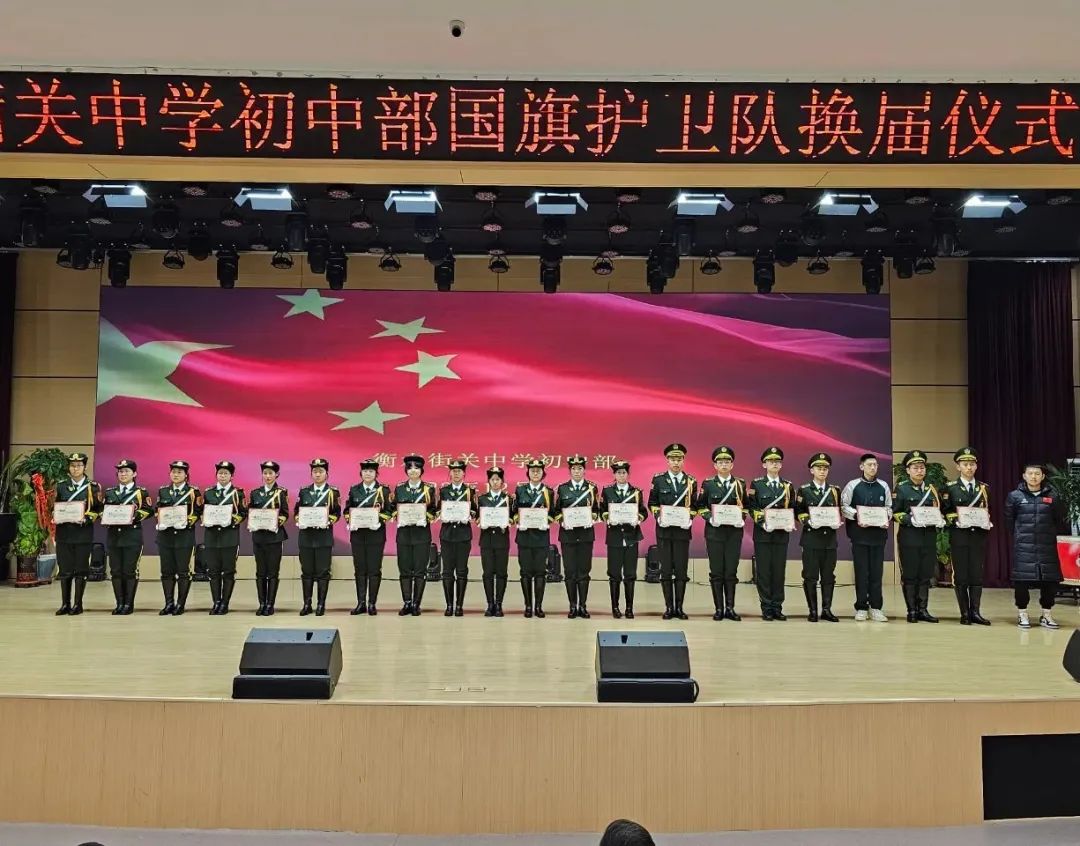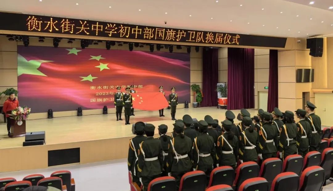 隨著“起來(lái),不愿做奴隸的人們”的音樂(lè)聲徐徐上升時(shí),衡水街關(guān)中學(xué)初中部迎來(lái)了一年一度的國(guó)旗護(hù)衛(wèi)隊(duì)換屆儀式,夏校長(zhǎng)、弓主任、代主任等各位領(lǐng)導(dǎo)出席本次換屆儀式。