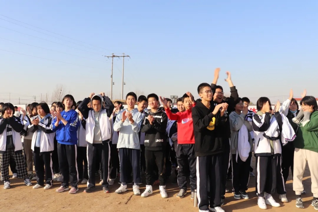 運動會上,嚴(yán)寒的的冬日被師生的激情點燃,歡快的笑聲洋溢在賽場上。賽場外的同學(xué)和老師也在大聲的為同學(xué)們加油打氣,為了班級的榮耀,每一個人都在努力著!